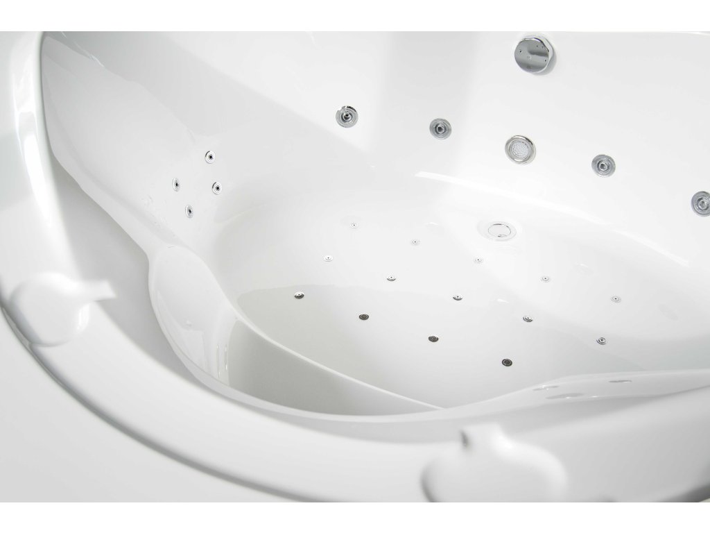 - Objem: 183 litrů při maximálním napuštění (vanu není potřeba napouštět do jejího plného objemu, pro použití masážních trysek stačí vanu naplnit po horní hranu nejvýše položených trysek).